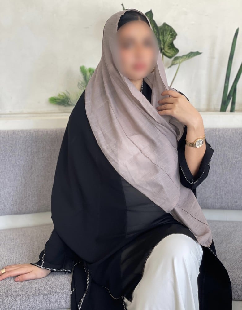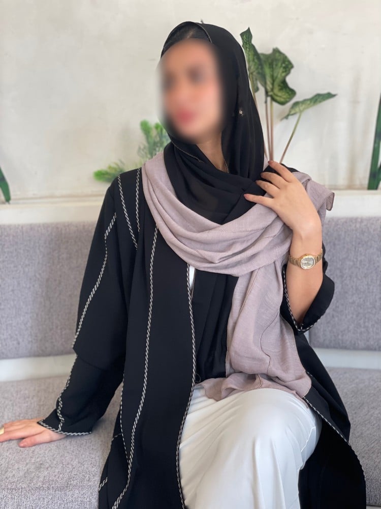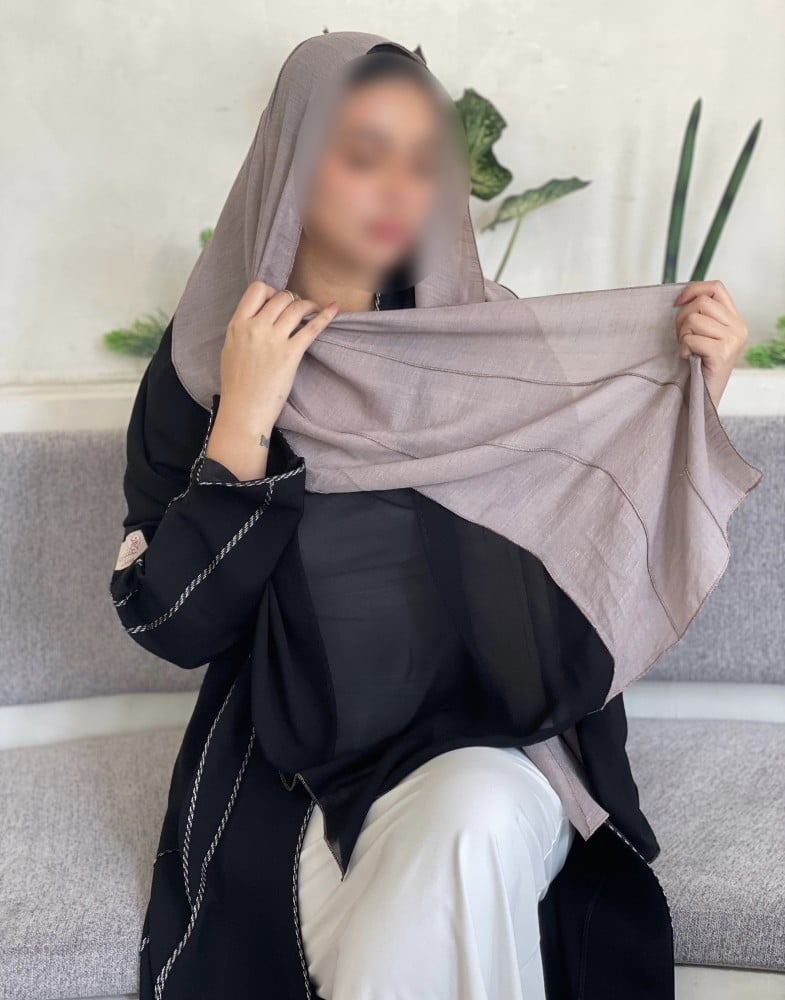 طرحة سودة بيج مع اللون الاسود لاطلالة مثالية مميزة وانيقة تتميز بأنها صصمت بخامة ثابتة وسهلة اللف وتليق بكل عباياتك وملابسك .